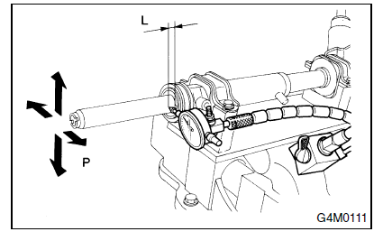 Si les jeux libres de l'arbre d'entrée dans le sens radial et axial excèdent les spécifications, remplacez le boîtier de direction par un neuf. (Voir "Limite de service".) | ||